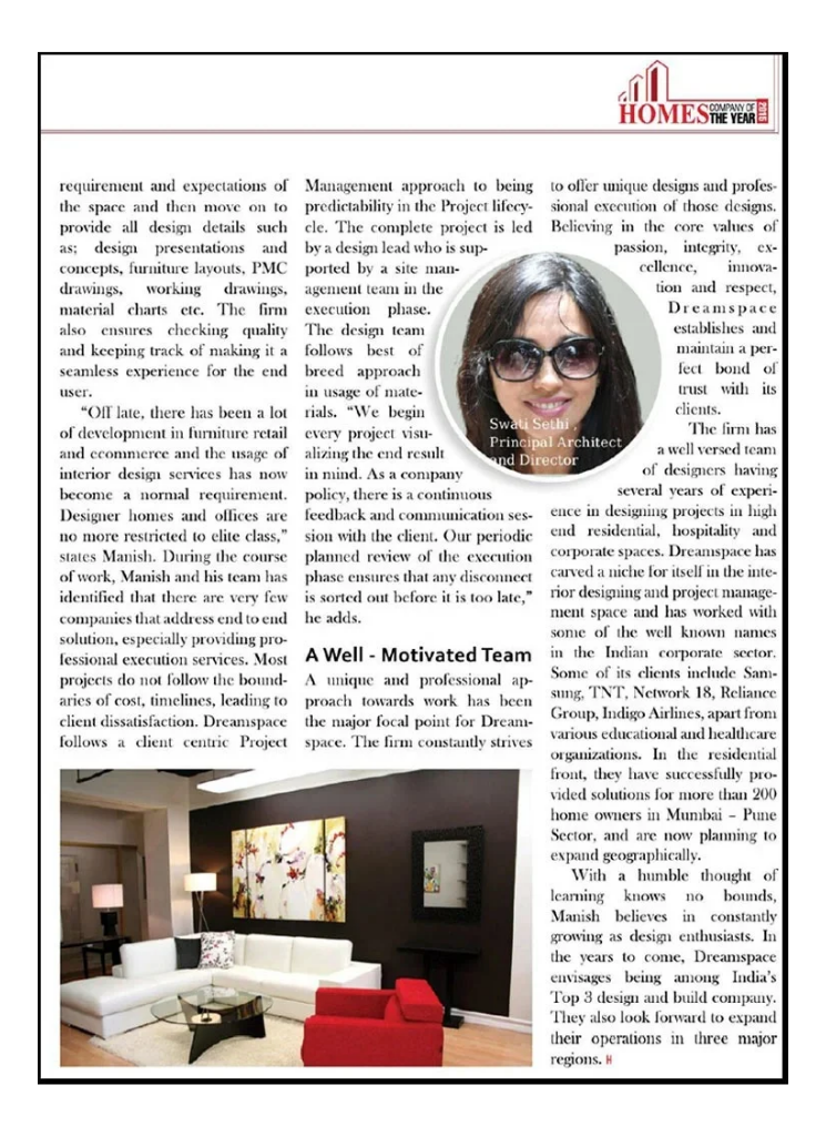 Featured in HOMES Magazine as Company of the Year 2015, highlighting Dreamspace’s design excellence and industry impact.